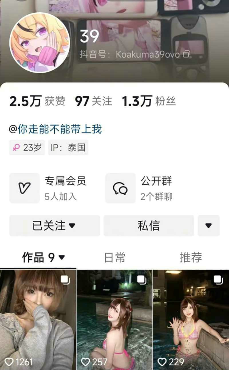 抖音网红【39】如此绝美容颜 线下竟是反差福利姬 泰国当爱爱伴游 遇粉丝认出被曝光